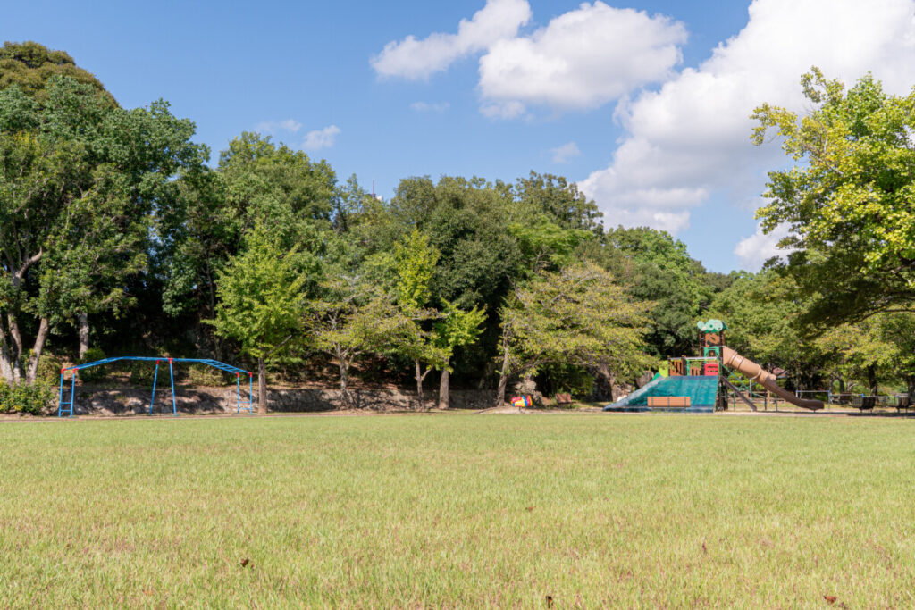 城山公園(しろやま) 更新日:2026.04.15 スポット 自然 遊ぶ・体験 1月〜3月 4月〜6月 7月〜9月 10月〜12月 橙エリア 町を見渡す公園 城山公園 川棚駅前そばの丘の上にある『城山公園』。川棚の町並みと大村湾を見渡すことができます。 芝生の広場に豊富な遊具🛝 池には魚やウシガエルの姿も見られます👀春には、満開の桜が楽しめるお花見スポット。 夏には、園内の上り坂を登った辺りのくぬぎの木には、カブトムシやクワガタが集まってきます。(こぼれ話)夜になるとひっそりと静まり返る公園。丘の上から眺める夜景がロマンティック。遠くに長崎空港も見えます。 \ この記事をSNSでシェアする /
